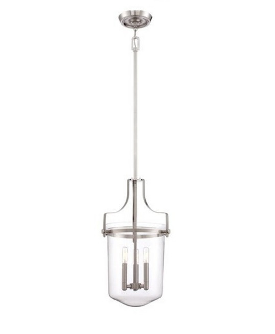 - Lampa wisząca Penn Station firmy Elstead Lingting jest wykonana z metalu i szklanego klosza.