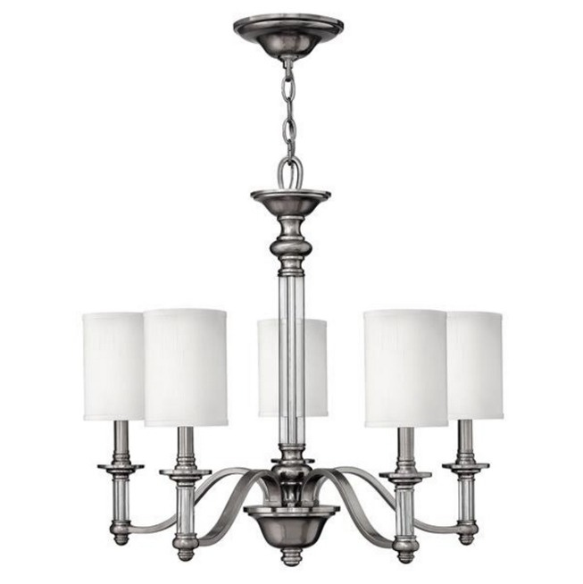 - Lampa wisząca Sussex firmy Elstead Lingting jest wykonana z metalu i abażura z tkaniny.