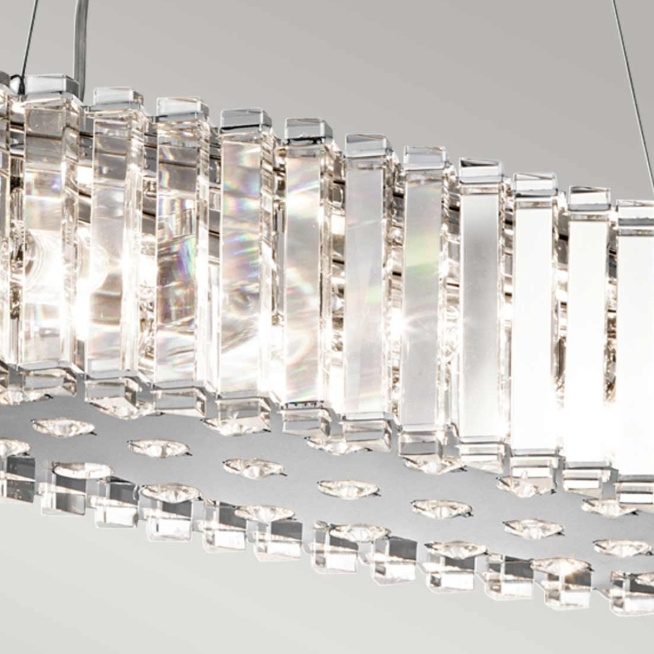 - Lampa wisząca Crystal Skye firmy Elstead Lingting jest wykonana z metalu i szkła.