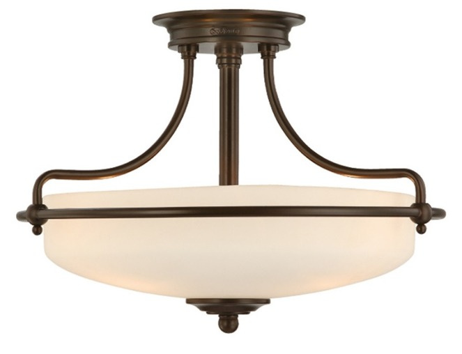 - Plafon Griffin firmy Elstead Lingting jest wykonany z metalu i szkła.