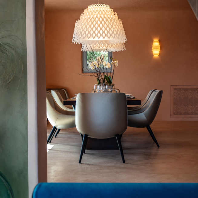 Lampa Half Charlotte została wykonana z innowacyjnego tworzywa, które w kontakcie ze światłem tworzy piękny efekt.