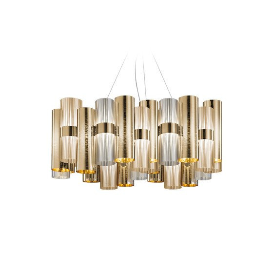 La Lollo to lampy składające się z wielu cylindrów wykonanych z pryzmatycznego tworzywa w różnych wariantach kolorystycznych.
