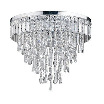 - Elegancki plafon z dekoracyjnymi kryształami o różnej długości. Kryształowe zawieszki tworzą stożek skierowany w dół, osłaniają żarówki efektownie rozbijając światło. Kalabria wprowadza do wnętrza luksus i nadaje pomieszczeniu charakteru.