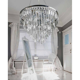 Tradycyjne kaskadowe formy oraz dekoracyjne kryształy sprawiają, że lampy prezentują się wyjątkowo efektownie.