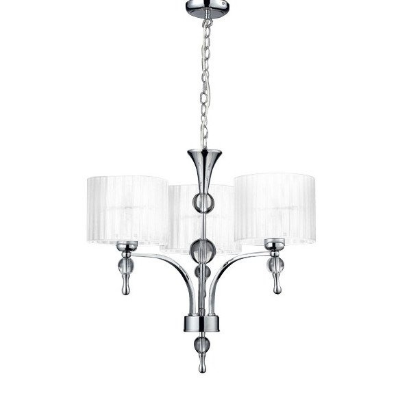 - Lampa wisząca Azzardo wykonana z metalu, akrylu i tkaniny. Chromowamy metal, akryl i transparentne abażurki wspaniale ze sobą komponują