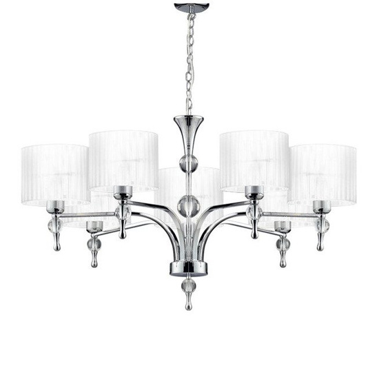 - Żyrandol marki Azzardo wykonany z metalu, akrylu i tkaniny