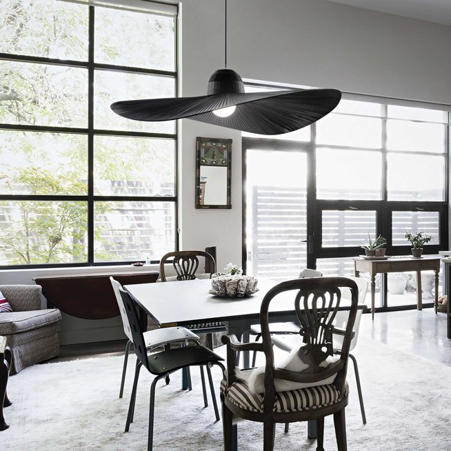 Nietypowa budowa lampa ma kształt szykownego kapelusza