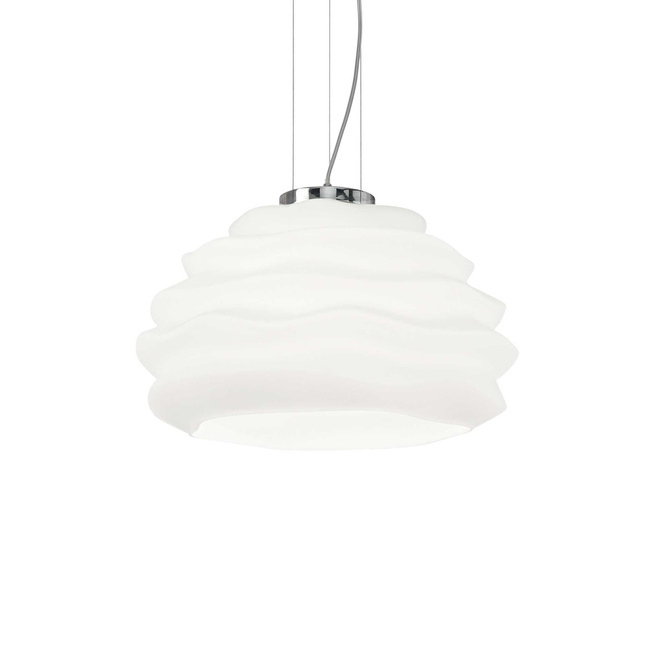 Szklany klosz o ciekawej, dekoracyjnej formie przyciąga uwagę i nadaje lampie lekkości.