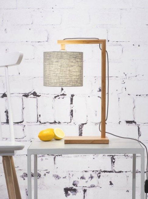 • Lampa stołowa wykonana z drewna bambusowego z abażurem