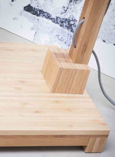 - Lampa podłogowa wykonana z drewna bambusowego z abażurem