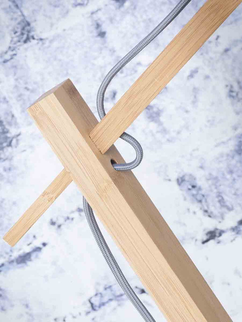 Wykonana z drewna bambusowego lampa podłogowa będzie doskonale wyglądać we wnętrzach nowoczesnych czy skandynawskich.