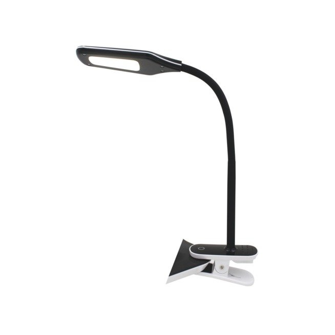 • Nowoczesna lampka biurkowa z wbudowanym źródłem światła LED. Standardowa podstawa lub mocowanie na klipsie.