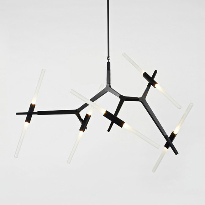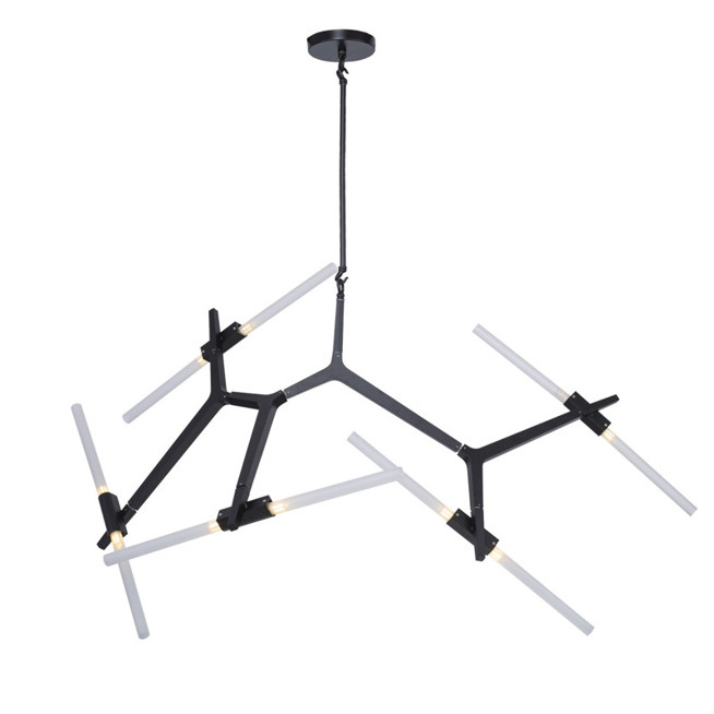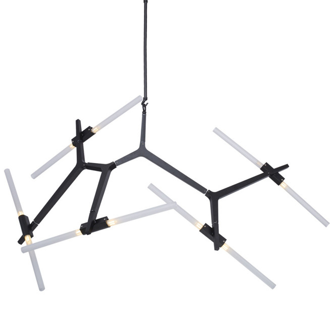 Designerska lampa wisząca w kolorze czarnym matowym o asymetrycznej formie z możliwością regulacji ramion w wielu płaszczyznach.