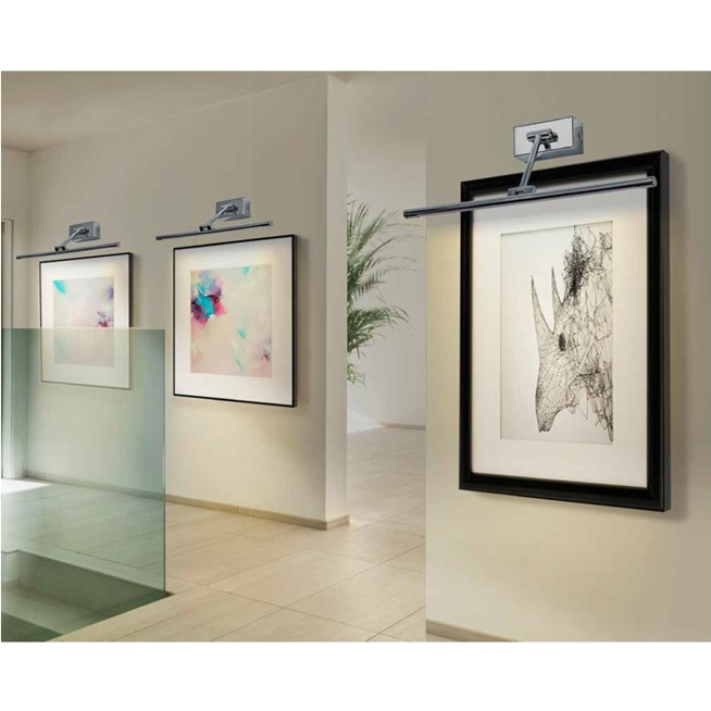 - Nowoczesny kinkiet z obrotowym źródłem światła polecany do oświetlania obrazów i nad lustra w łazience.