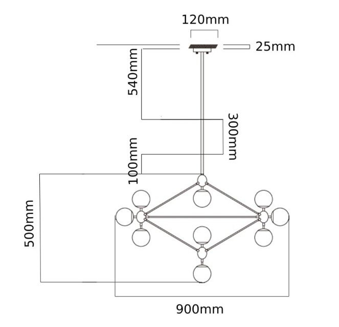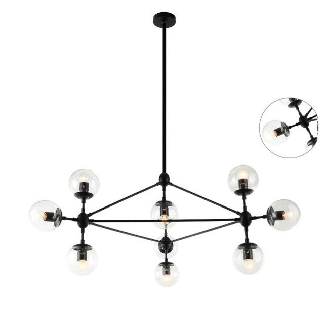 • Nowoczesny czarny żyrandol z szklanymi kloszami