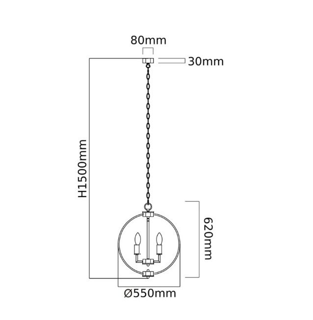Wyjątkowy żyrandol posiada cztery źródła światła umieszczone wewnątrz okrągłego stelaża.