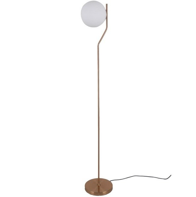 - Nowoczesna lampa podłogowa w kolorze miodowego mosiądzu ze szklanym kloszem z mlecznego szkła. Idealnie sprawdzi się w salonie.