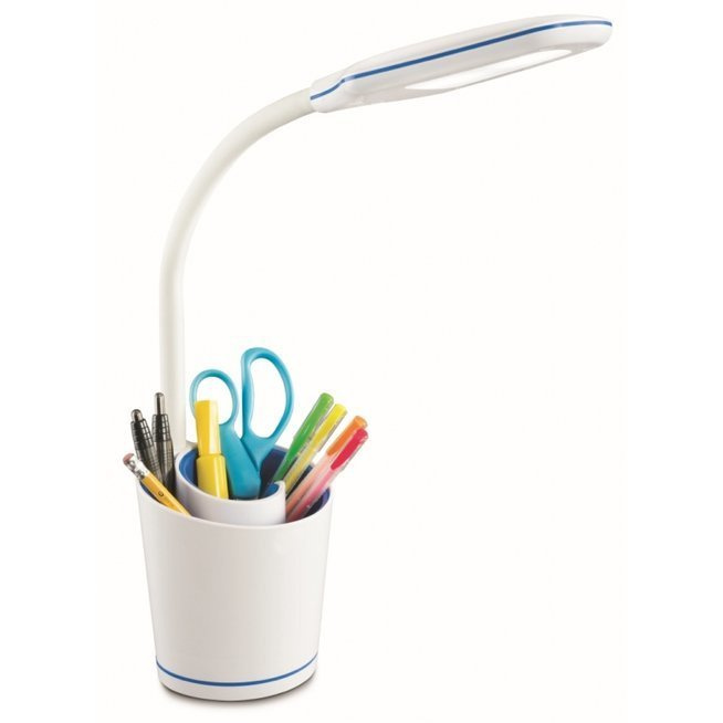 Lampka biurkowa z przybornikiem Elsa biało niebieska Nilsen