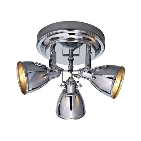 - Metalowy plafon w stylu retro z ruchomymi kloszami pozwala ukierunkować światło, tam gdzie jest potrzebne. Można zastosować żarówki tradycyjne, energooszczędne lub ledowe o dowolnej barwie.