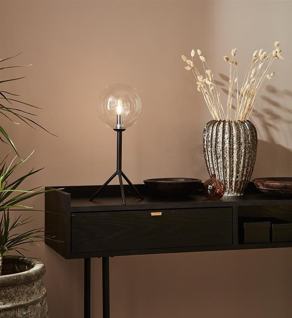 Dzięki zastosowaniu przezroczystego, szklanego, okrągłego klosza lampa daje przyjemne światłoPolecana jako oświetlenie do salonu lub gabinetu.