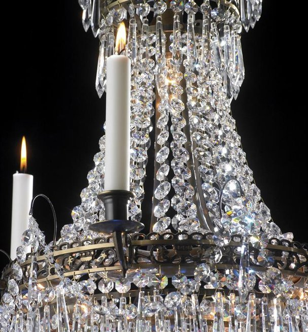 Lampa przypomina świecznik z licznymi kryształami.