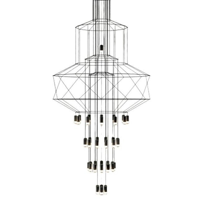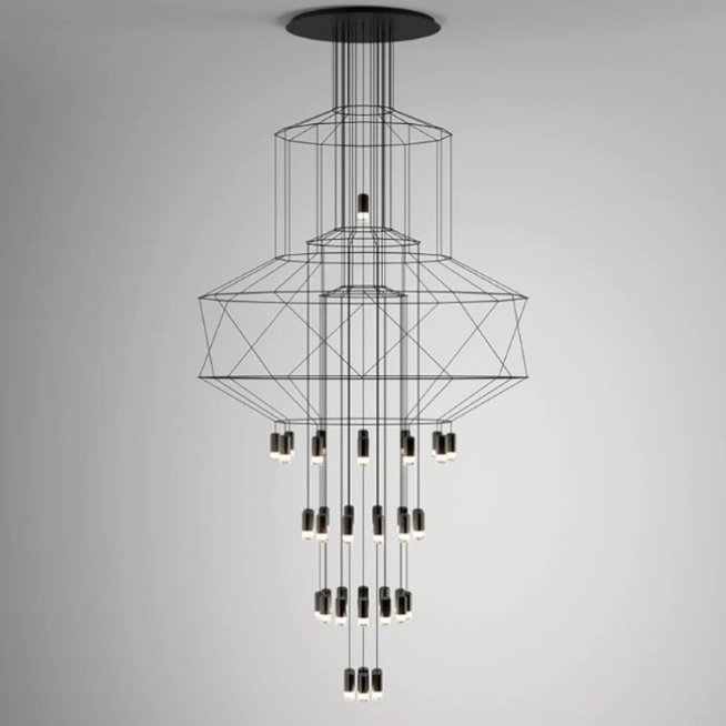 • Lekka forma lampy wiszącej o linearnym kształcie na bazie ośmiokąta.