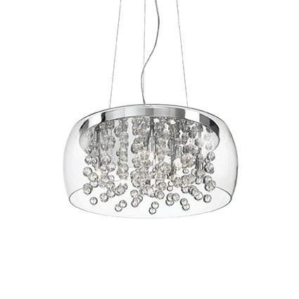 - Chromowana metalowa rama. Elementy dekoracyjne ze szklanymi kulkami na drutach metalowych. Dyfuzor ze szkła dmuchanego. Kable stalowe o regulowanej długości i automatycznym zatrzymaniu linki.