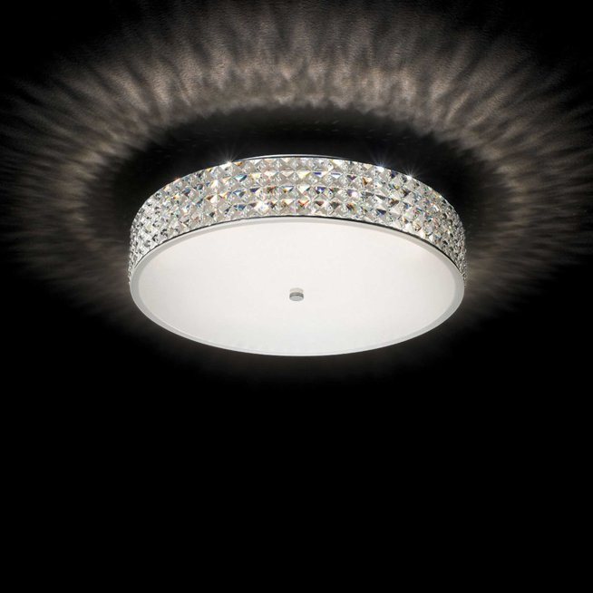 - Lampa sufitowa włoskiej firmy Ideal Lux. Rama i detale wykonane są z chromowanego metalu , dyfuzor z z kwadratowych kryształowych elementów, przesłona z mlecznego szlifowanego szkła.