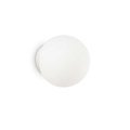 - Klosz w kształcie kuli w wydmuchiwanym i trawionym białym szkle. Wykończenia chromowe.