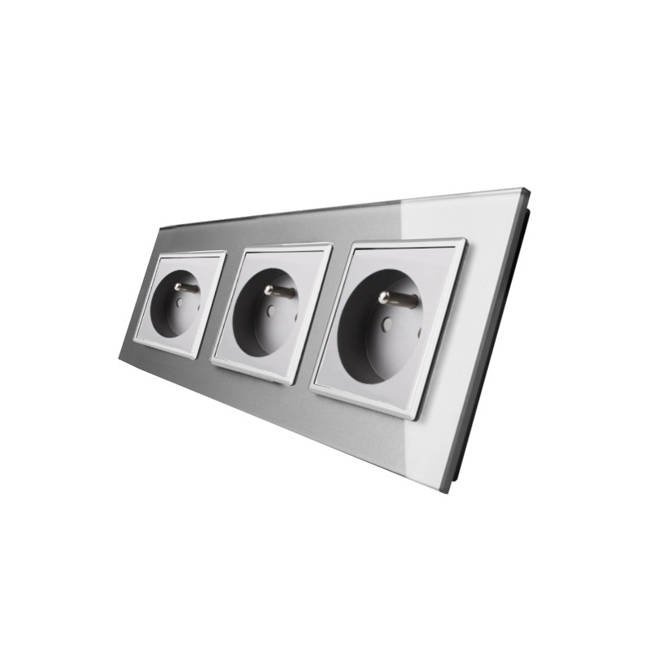 Opinie o Komplet LIVOLO trzy gniazda z bolcem w szklanej ramce kolor srebrny