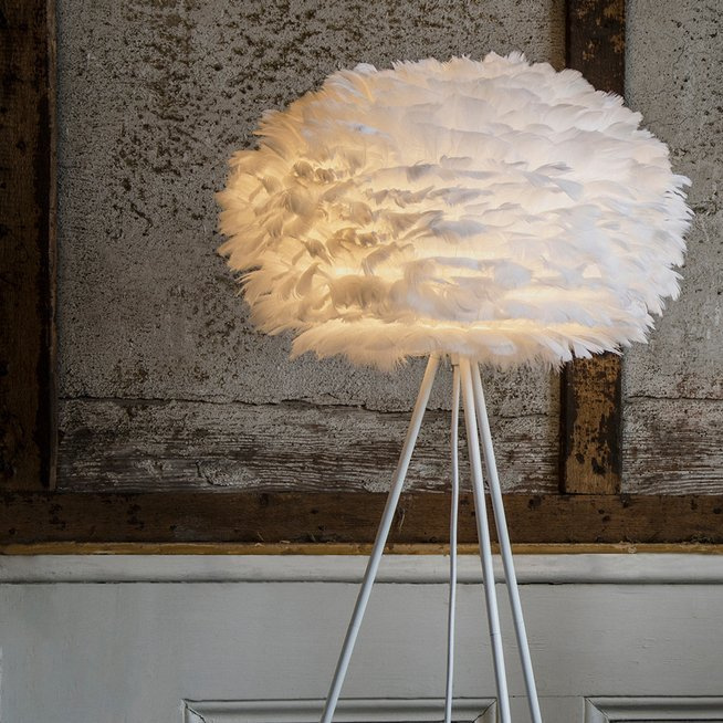 Na praktycznej podstawie typu tripod umieszczono oryginalny klosz z piór.