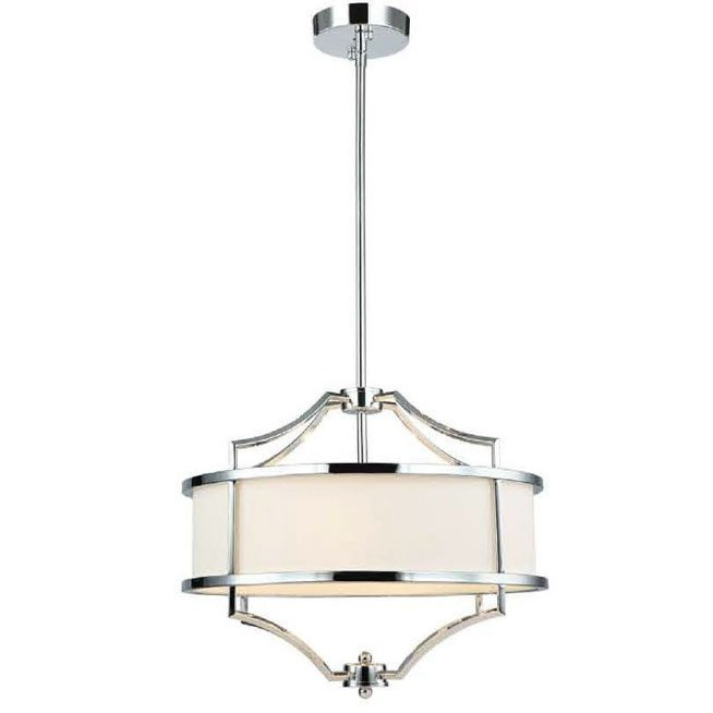 - Wisząca lampa utrzymana w stylu nowojorskim. Na metalowym chromowanym stelażu umieszczony jest biały abażur z tkaniny. Lampa dostępna w dwóch rozmiarach.