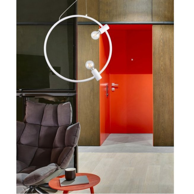 Żarówki na okręgu stanowią ciekawą kompozycjęOprawa polecana do nowoczesnych pomieszczeń.