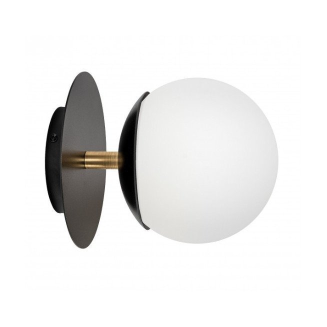ludziom lubiącym minimalistyczny, nowoczesny design. Lampy z metalu, mosiądzu i szkła. Oprawa w kolorze czarno złotym. W środku biała szklana kula. Oprawa do nowoczesnych wnętrz. Polecana do luksusowych przestrzeni prywatnych lub komercyjnych. Ładnie będzie prezentować się w gabinecie, salonie lub sypialni.GWARANCJA PRODUCENTA 2 LATA
