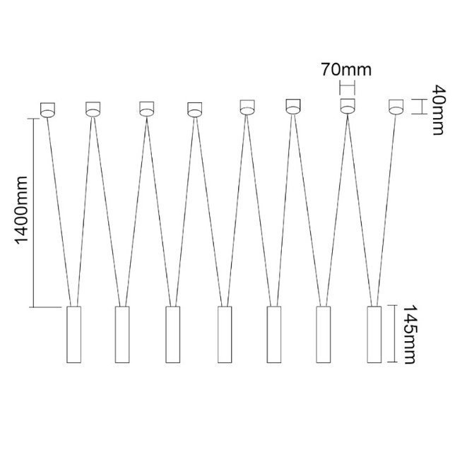 - Nowoczesna lampa wisząca. Nietypowy sposób podwieszenia punktowego, tworzy kształt zygzaka. Lampa prezentuje się subtelnie i delikatnie.