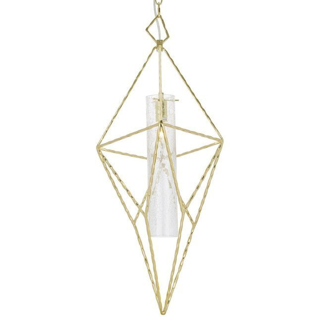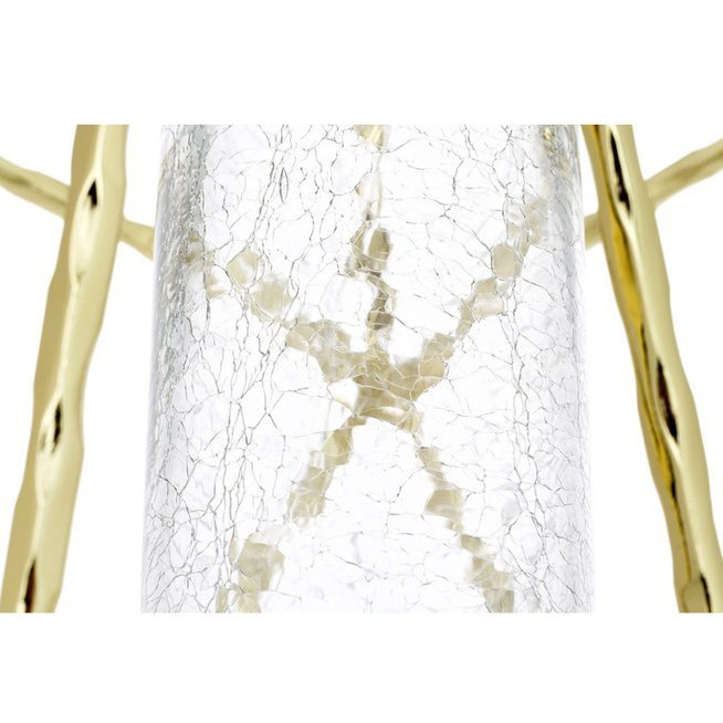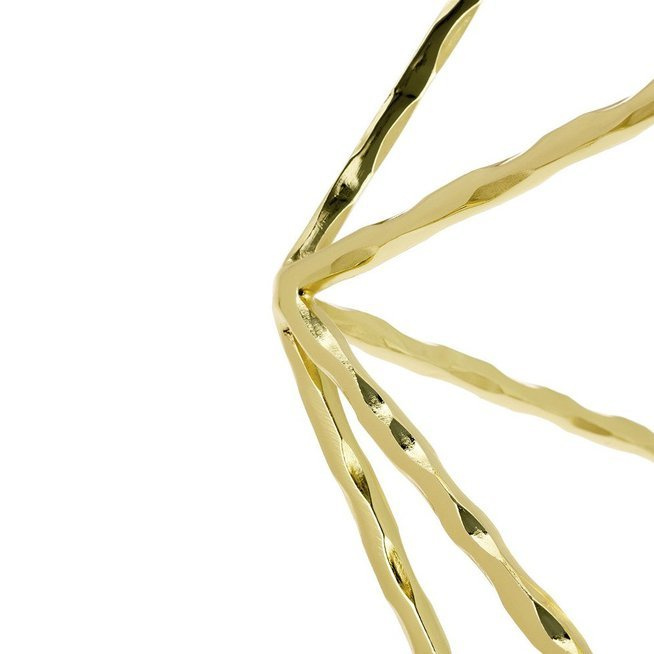 Ciekawa geometryczna konstrukcja wykonana została z metalu w kolorze złotym.