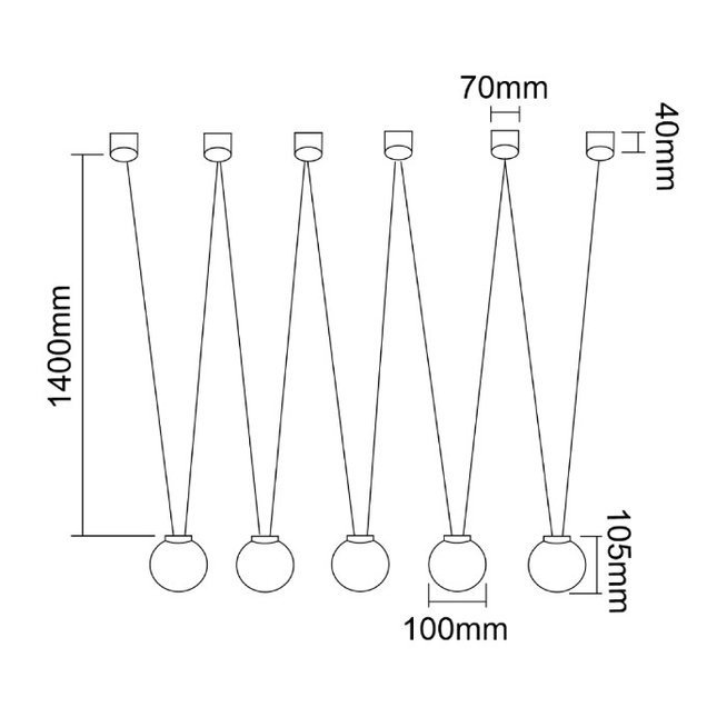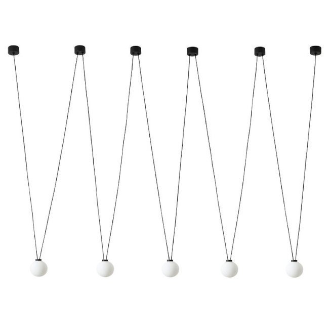 Lampa tworzy kształt zygzaka, dzięki temu, że została podwieszona punktowo w 6 miejscach na suficie..