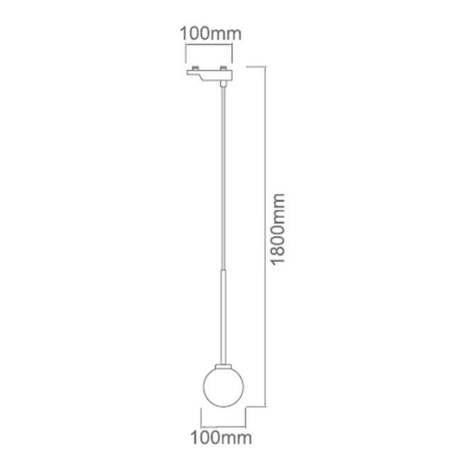 Lampa wisząca do szynoprzewodu z okrągłym, szklanym kloszem.