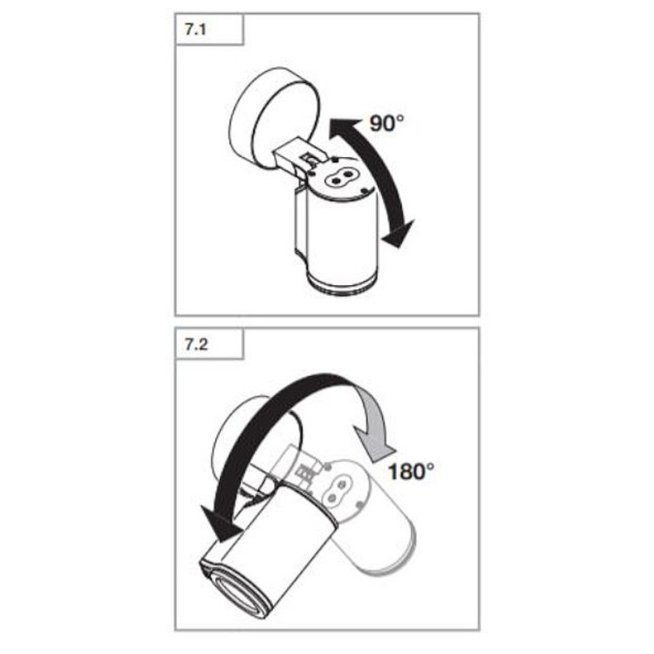 - Głowica lampy obraca się o 180° i przechyla o 90° , co pozwala w łatwy sposób skierować światło w dowolną stronę