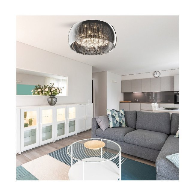 Szklany klosz lampy, w środku którego mamy delikatne kryształki.. Oprawa świetnie ozdobi sypialnie, salon, gabinet czy jadalnie Polecana dla osób lubiących klasykę i elegancję.GWARANCJA PRODUCENTA 2 LATA