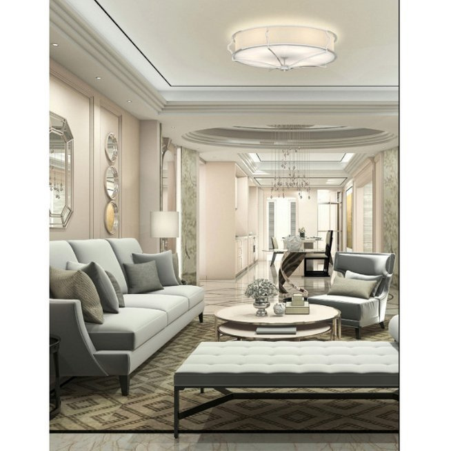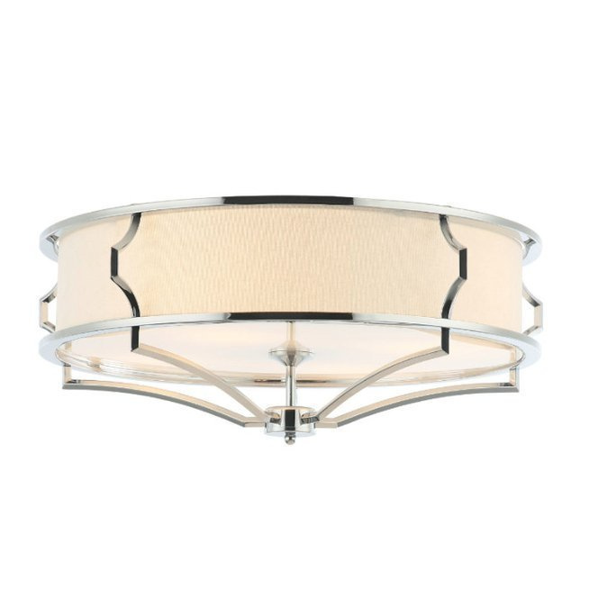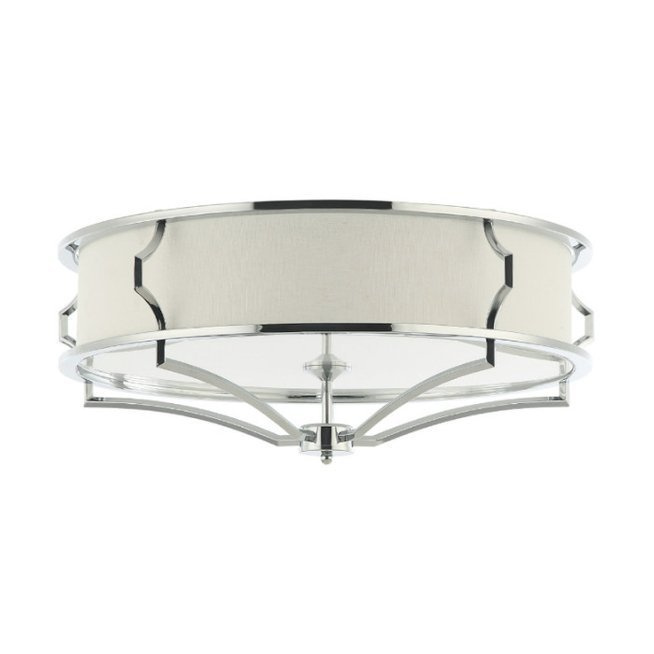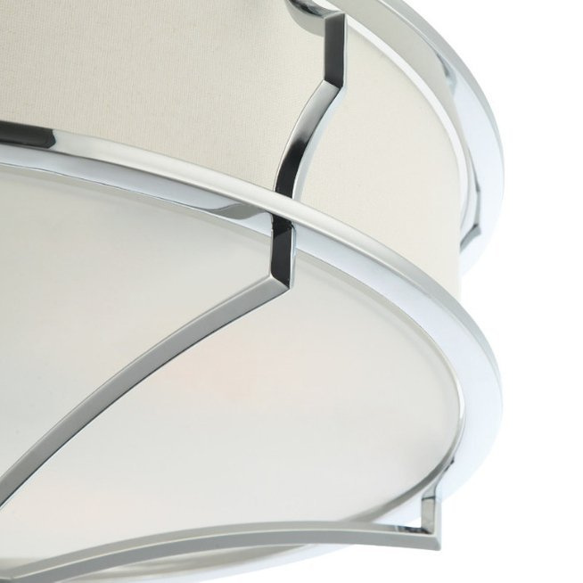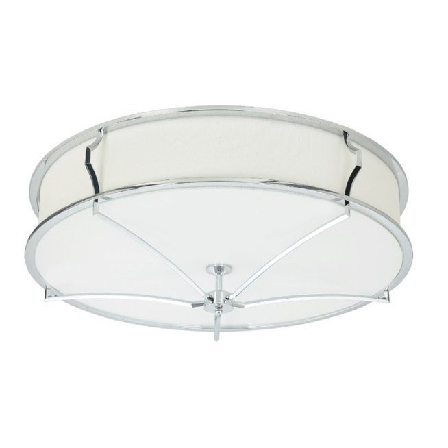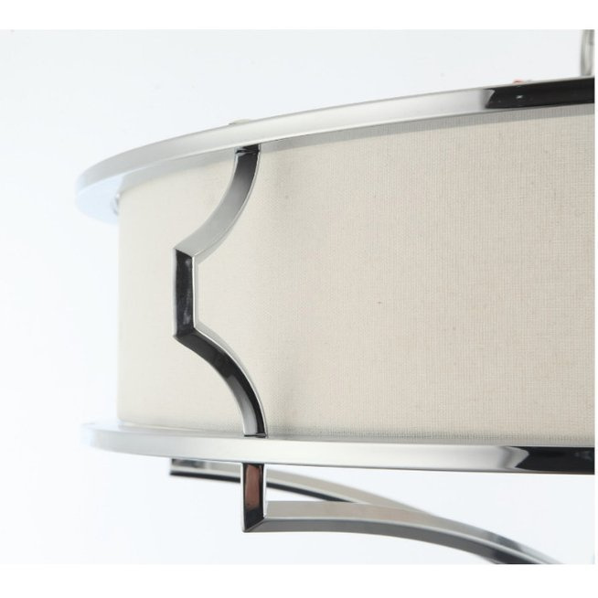 - Sufitowa lampa utrzymana w stylu nowojorskim. Na metalowym chromowanym stelażu umieszczony jest biały abażur z tkaniny. Lampa dostępna w dwóch rozmiarach.