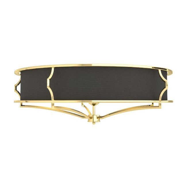 - Sufitowa lampa utrzymana w stylu nowojorskim. Na metalowym złotym stelażu umieszczony jest czarny abażur z tkaniny. Lampa dostępna w dwóch rozmiarach.