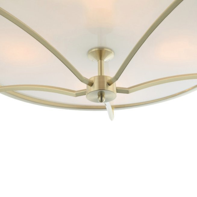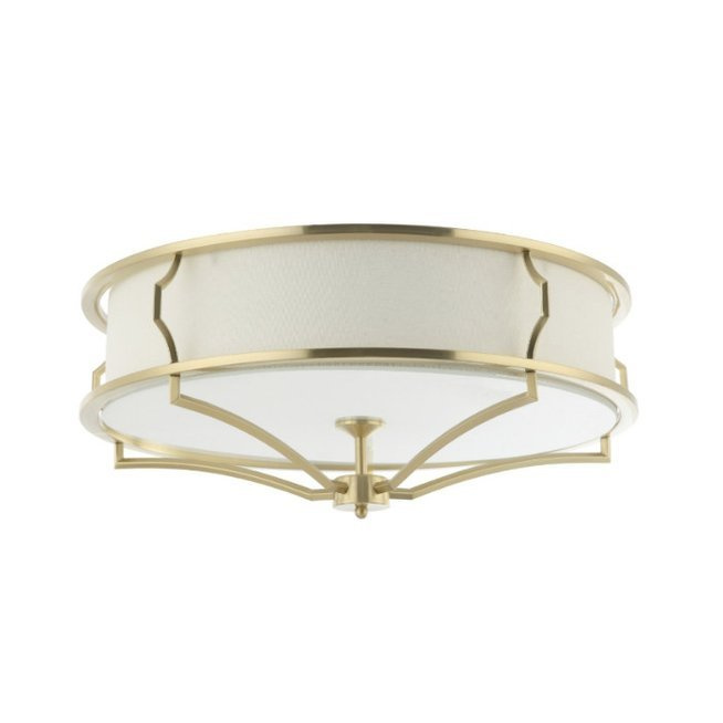 - Sufitowa lampa utrzymana w stylu nowojorskim. Na metalowym złotym stelażu umieszczony jest biały abażur z tkaniny. Lampa dostępna w dwóch rozmiarach.
