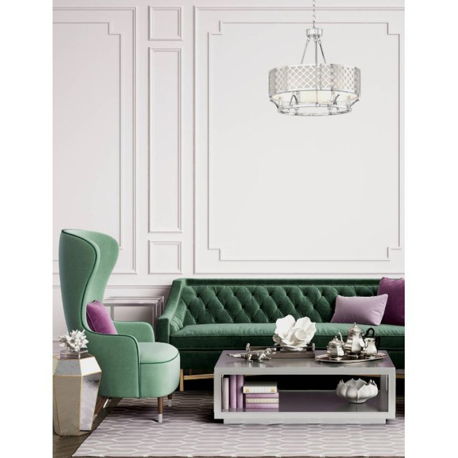 • Wisząca lampa utrzymana w stylu nowojorskim. Na metalowym chromowym stelażu umieszczony jest biały abażur z tkaniny. Lampa dostępna w dwóch kolorach.
