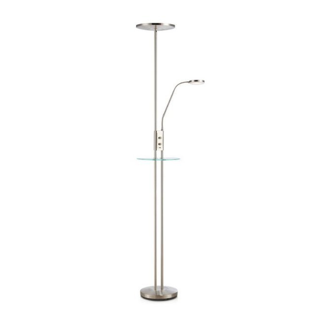 • Nowoczesna lampa podłogowa. Lampa posiada półeczkę na którą można odłożyć np. książkę.