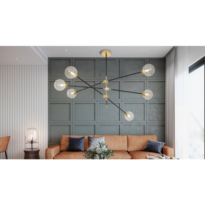 Niebanalna, czarno-złota lampa z okrągłymi kloszami