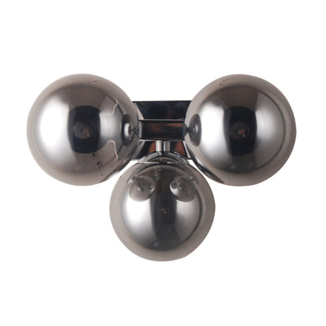 Dekoracyjna lampa składająca ze szklanych kul umieszczonych na metalowym stelażu.