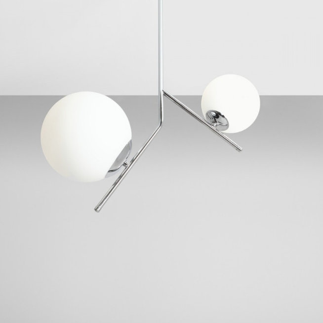Lampa Gallia to chromowana lampa z mlecznymi okrągłymi kloszami.