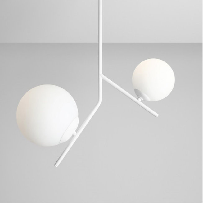 Lampa Gallia to biała lampa z mlecznymi okrągłymi kloszami.