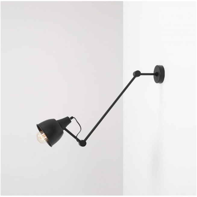 Lampa Aida to czarna lampa ścienna z prostym kloszem osadzonym na ruchomym ramieniu.